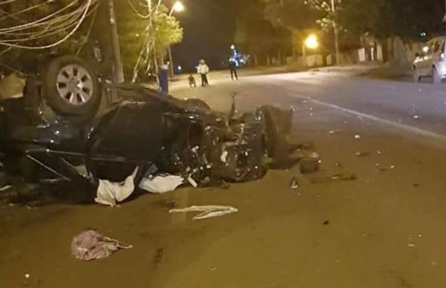 O maşină puternică (Audi A6), care circula cu o viteză foarte mare - se pare că ar fi vorba de mai mult de 150 de kilometri la oră - a „decolat” de pe şosea, a rupt doi stâlpi din beton şi s-a răsturnat. Practic, autoturismul s-a mototolit ca o bucată de hârtie în urma impactului deosebit de violent, iar martorii oculari spun că nici măcar nu au reuşit, la început, să-şi dea seama ce model de Audi este.