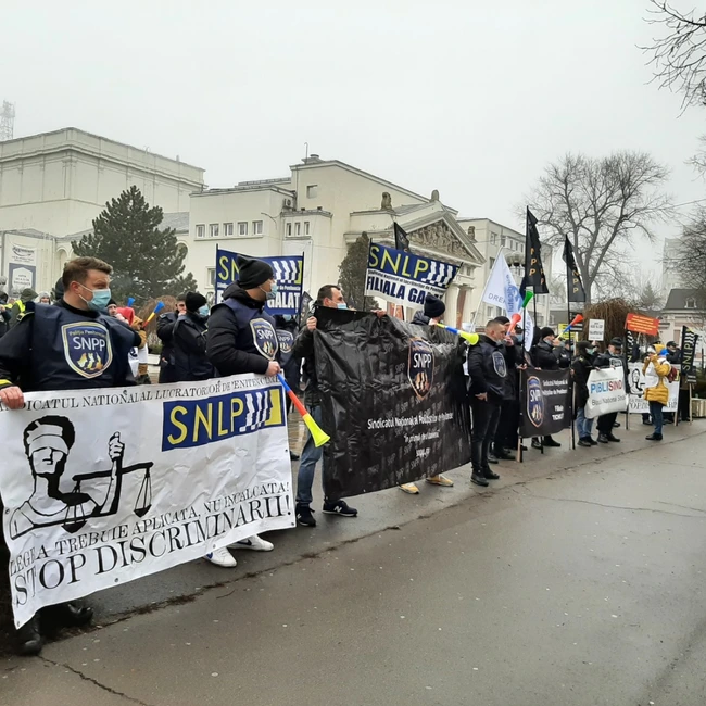0Peste 100 de angajaţi din apărare şi ordine publică au protestat, miercuri, la Galaţi, numulţumiţi faţă de inechităţile salariale şi de Ordonanţa de Urgenţă privind măsurile fiscal bugetare în anul 2021, prin care salariile sunt îngheţate la nivelul lunii decembrie 2020.