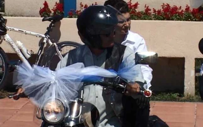 După cununia religioasă, oficiată la Biserica Sfântul Spiridon, alaiul s-a îndreptat către petrecerea de nuntă tot pe motociclete. Iar la un astfel de eveniment şi urările trebuiau să fie în ton, aşa că mirii au auzit din partea tuturor “Asfalt uscat în căsnicie”.