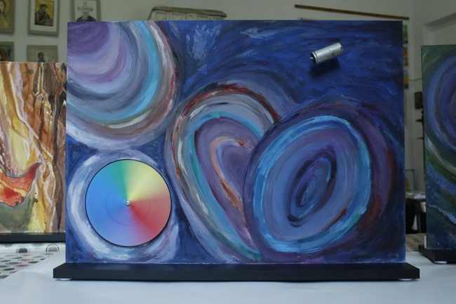 În atelierul de pictură de la Palatul Copiilor au fost concepute mai întâi compoziţii pe suport de lemn, folosind tehnica picturii în ulei. Ulterior, copiii au pregătit suporturile pentru lucrările lor, integrând module de diferite dimensiuni, ce reprezintă forme tridimensionale pictate şi cercul lui Newton.