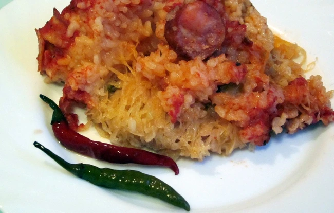 Se mai lasă cam 20 de minute în cuptor, apoi se scoate tava din cuptor şi se verifică orezul dacă este bine fiert.