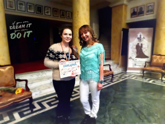 Emilia Savu cu una dintre elevele sale după câştigarea unui concurs FOTO arhiva personală