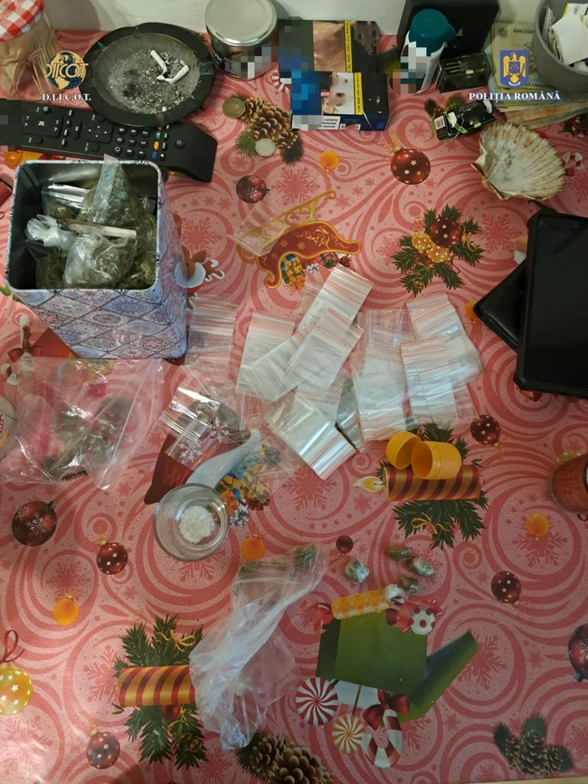 În urma perchezițiilor domiciliare efectuate au fost identificate și ridicate peste 180 de plicuri conținând substanță vegetală, porționată și ambalată în scopul comercializării, mai multe pungi și recipiente conținând substanță vegetală, mai multe punguțe cu substanțe de tip cristal, cântare electronice, obiecte purtătoare de urme de substanță, sume de bani, precum și alte mijloace de probă.