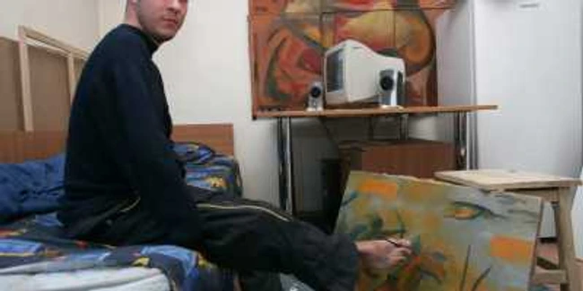 Teribilul handicap de care suferă tânărul în vârstă de 27 de ani nu l-a împiedicat să-şi urmeze vocaţia artistică. În urmă cu trei ani, pictorul a absolvit Universitatea de Arte din Bucureşti.
