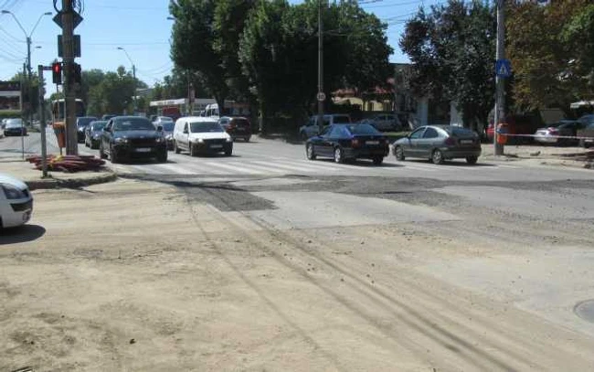 FOTO În Galaţi, ca la ţară. Una dintre cele mai circulate intersecţii din oraş e plină de şanţuri pe toate sensurile de mers