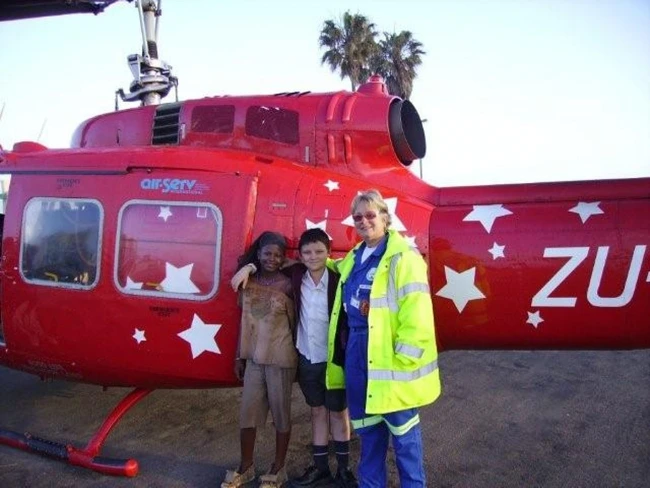 „Ea conducea şi eu tratam. Câteodată conduceam şi eu. Am început cu o maşină veche de peşte pe care ne-a dat-o soţul ei. Prima ambulanţă am denumit-o «Blue Angel» (n.r. – „Îngerul Albastru“). Diferite companii ne-au ajutat cu reparatul, vopsitul, cauciucurile, consumabilele“, îşi aminteşte Gabriela. Primul electrocardiograf cu defibrilator i-a fost donat de actorul american Dennis Quaid, aflat în Namibia pentru a turna un film. „Drept mulţumire, le-am scris numele tuturor pe ambulanţă“, îşi mai aminteşte românca.