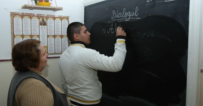 Două treimi dintre „elevii” Şcolii Gimnaziale 44, care funcţionează în incinta Penitenciarului Galaţi, au decis să-şi doneze îndemnizaţiile pe ultimele luni pentru ca un copil bolnav să poată vedea lumina zilei, pentru prima dată. Copilul este chiar nepotul celei care-i învaţă pe deţinuţi să scrie, învăţătoarea – Elena Caval.
