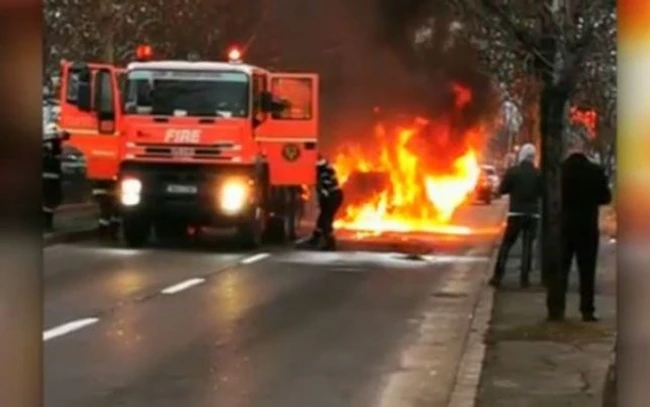 Maşină de lux, incendiată intenţionat într-o parcare din Galaţi. Alte două autoturisme, afectate de flăcări