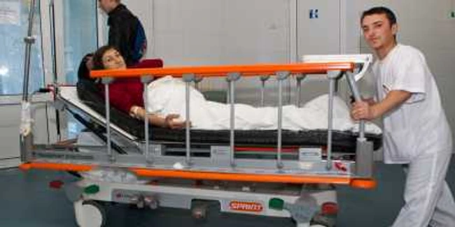 Micul voluntar de la Urgenţe. Nici nu se vede de după targa cu care duce bolnavii la analize sau în secţiile spitalului