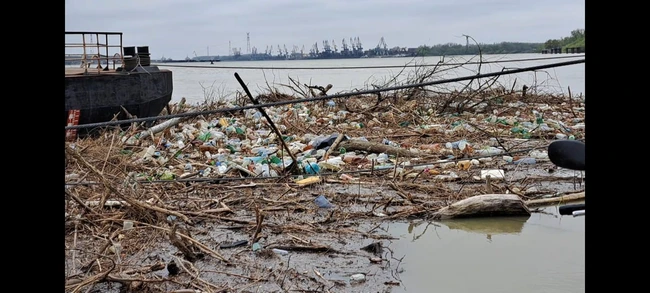 Luciul apei este acoperit de bidoane din plastic, ambalaje, materiale textile, bușteni aduși de viitură şi chiar leşuri de animale. Deşeurile vin din amonte de la localităţile de pe fluviu, dar şi de pe afluenţii Dunării, în special de pe Siret.