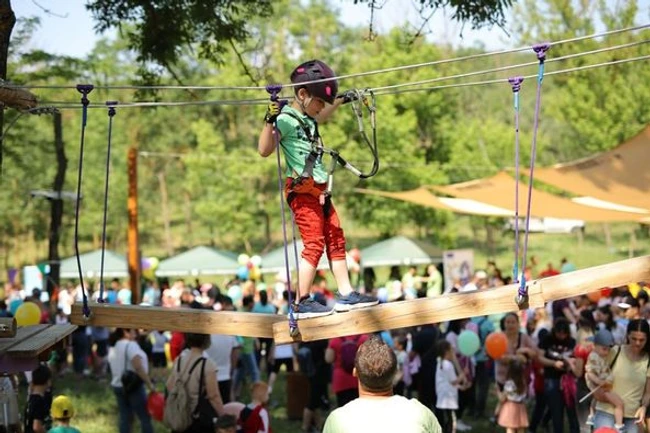 Lor li se adaugă alte câteva mii de părinți, bunici sau prieteni care au venit alături de ei în Parcul Aventură.