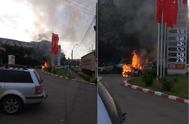Panică la Galaţi după ce un taxi a luat foc lângă o benzinărie. Incidentul a fost foarte aproape să producă o catastrofă