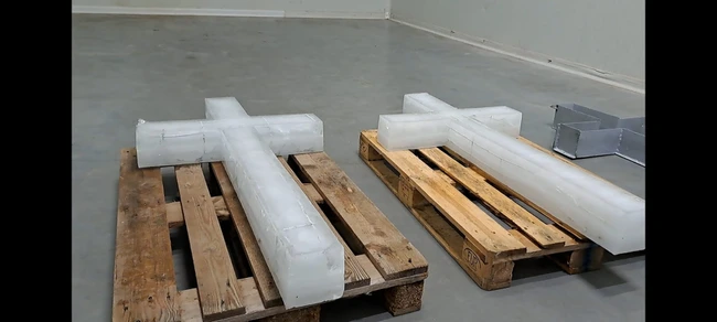 Pe lângă crucea principală, este pregătită şi o rezervă. Ele sunt făcute pe schelet metalic, într-o matriță specială, şi de la începutul anului a început crearea lor. Fiecare cruce cântărește 40 de kilograme.
