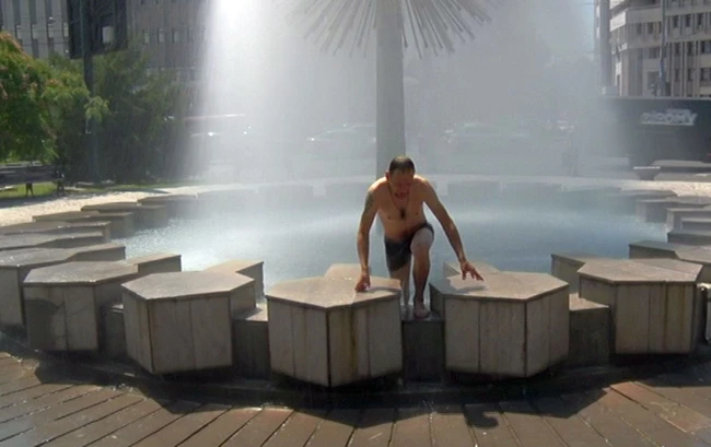 Rămas fără apă caldă de mai bine de trei luni, a decis să se spele într-o fântână arteziană din centrul oraşului