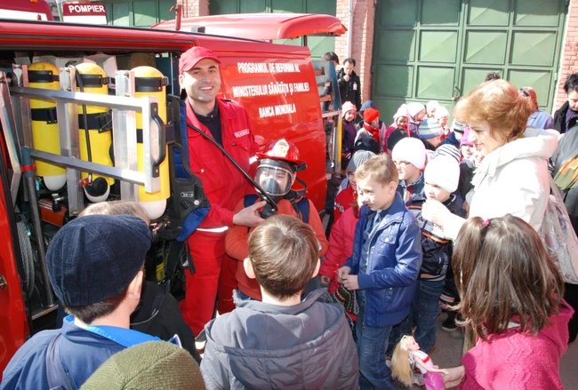 Ieri zeci de copii cu vârstele cuprinse între 4 - 8 ani şi-au manifestat bucuria bătând din palme atunci când au asistat la un exerciţiu de intervenţie pentru stingerea unui incendiu şi salvarea victimelor. Unii mai văzuseră aşa ceva doar în filme, iar alţii asistau pentru prima oară - pe viu - la o asemenea intervenţie.