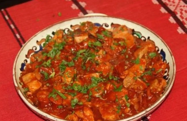 După ce închidem focul, adăugăm pătrunjelul tocat şi servim preparatul cu mămăligă sau pâine de casă şi o salată de murături.