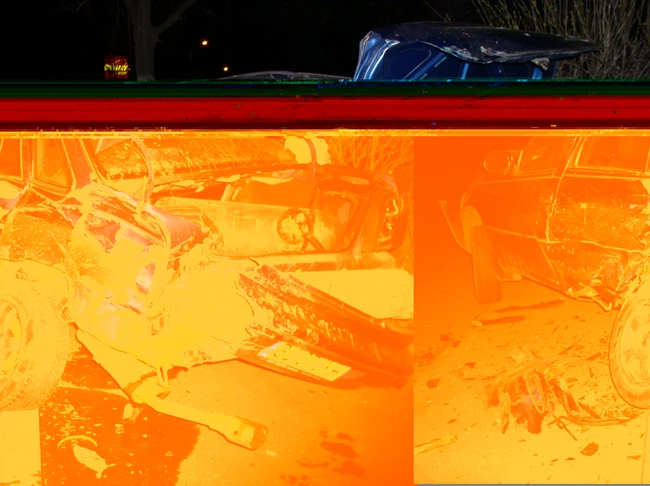 Un autoturism Dacia Break a „făcut praf” un Cielo a cărui butelie cu GPL s-a fisurat şi putea exploda
