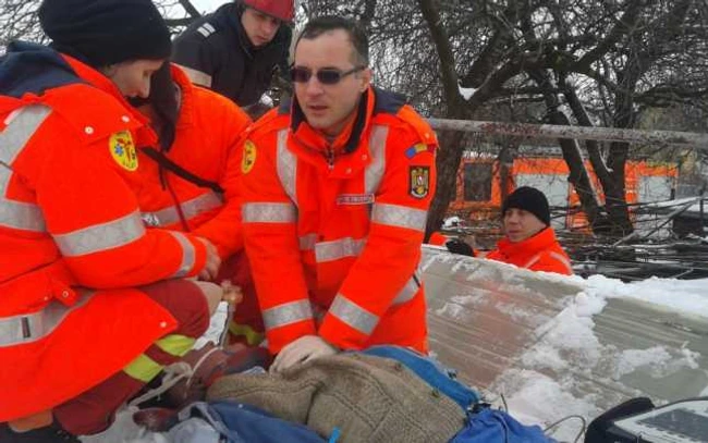Un echipaj SMURD a încercat să resusciteze un bătrân pe acoperişul înzăpezit al casei sale