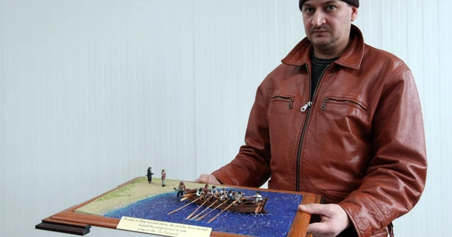 În vara acestui an, în oraşul italian La Spezia, concitadinul nostru a obţinut medalia de bronz la Campionatul european de modelism unde a impresionat juriul cu o dioramă. Aceasta înfăţişează la scară liliputană una dintre bărcile de salvare ale corabiei „La Diligente", cu care câţiva piraţi cară prada pe o plajă.