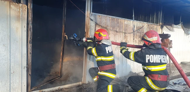 Video Un incendiu a distrus o hală din județul Galați. Focul a izbucnit din cauza jarului căzut din sobă VIDEO