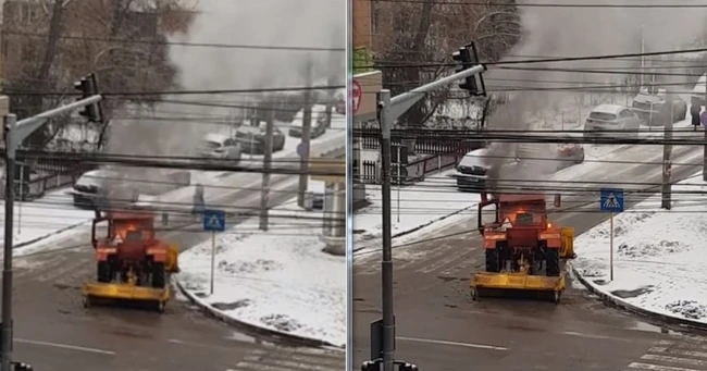 Un tractor folosit la deszăpezirea de la Galaţi a luat foc pe stradă. Imaginile postate pe internet au stârnit indignare