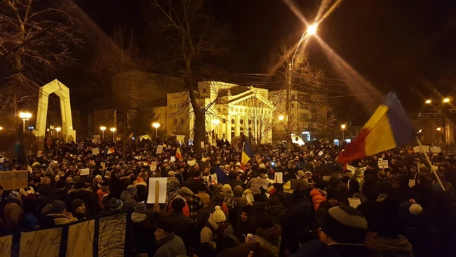 Circa 100 de persoane s-au adunat marţi seară, de la ora 23,00, la Galaţi, în faţa Prefecturii, pentru a protesta împotriva Guvernului Grindeanu, care tocmai ce adoptase prin ordonanţă de urgenţă o serie de modificări ale Codului Penal.
