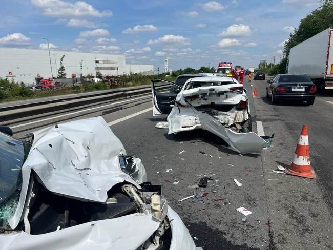 Accident rutier pe A1, la intrarea în capitală. Cinci mașini implicate. Trei victime, printre care și un copil de cinci ani