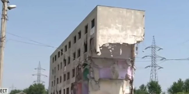 Primăria a încheiat, în urma unei licitaţii, un contract cu o firmă de construcţii pentru demolarea unuia dintre cămine, însă reprezentanţii firmei au venit cu buldozerele şi au demolat parţial celălalt bloc, nu pe cel prevăzut în contract.