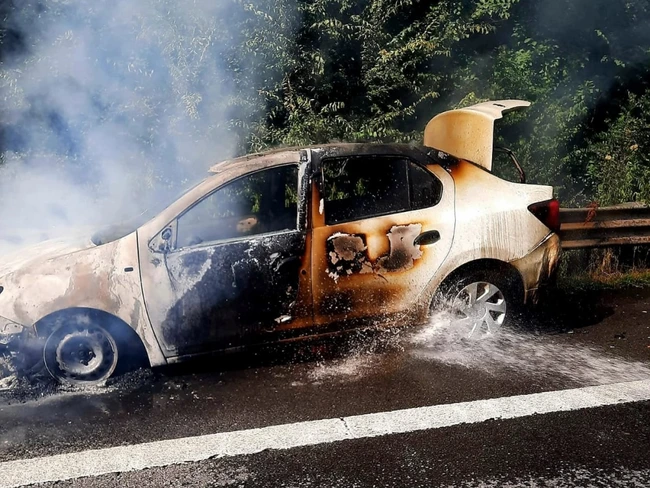 Maşină mistuită de flăcări pe A1. Recomandările pompierilor pentru a evita astfel de evenimente