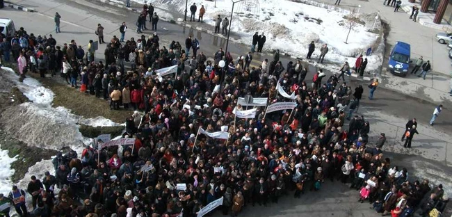 0Aproximativ 500 de persoane au protestat luni, 27 februarie, în faţa Prefecturii Giurgiu, faţă de decizia prefectului Robert Cristoi de a cere în instanţă anularea hotărârii Consiliului Judeţean privind aprobarea bugetului propriu de venituri şi cheltuieli.