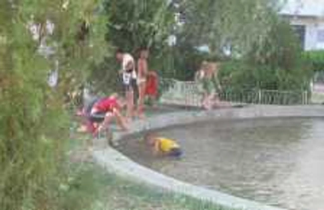 Pentru a scăpa de efectele caniculei, cei mai mulţi dintre giurgiuveni evită să iasă afară după-amiaza, în timp ce copiii mai curajoşi aleg să se bălăcească în fântâna arteziană din municipiu.