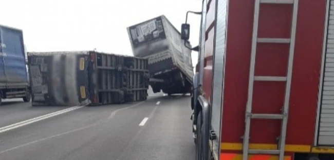 Accidentul rutier s-a produs pe DN5, în dreptul localităţii Uzunu (judeţul Giurgiu), acolo unde un autocamion s-a răsturnat pe carosabil blocând trei benzi de circulaţie, două spre Giurgiu, una spre Bucureşti.