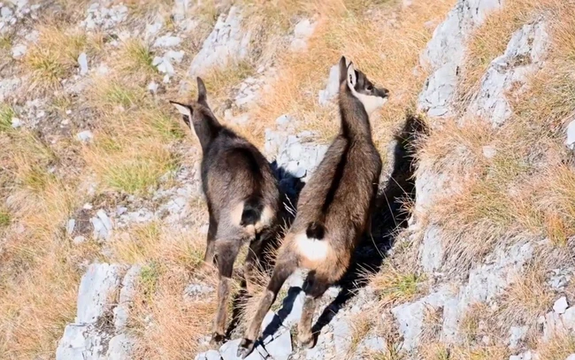 0Imagini rare au fost surprinse de angajații Parcului Național Retezat, în timpul unei acțiuni de monitorizare a faunei. Doi iezi de capră neagră au fost filmați pe stâncile din masiv.