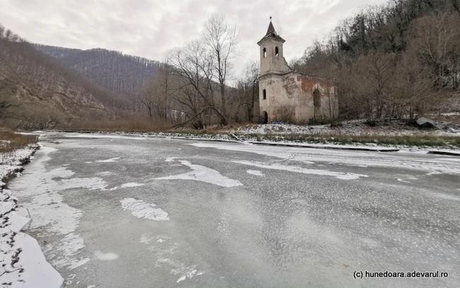 Runele bisericii romano-catolice din fostul sat Baia Craiului, în trecut înghiţite de apă, au devenit unul dintre reperele turistice ale Lacului Cinciş.