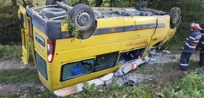 Detalii ciudate au ieşit la iveală după accidentul produs cu microbuzul şcolar de un bărbat de 70 de ani. Şoferul, care ar fi aţipit la volan, s-a răsturnat cu maşina plină de elevi într-o râpă, iar patru minori au avut de suferit.