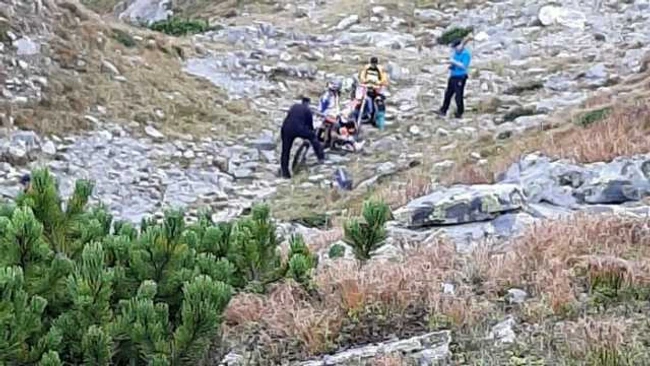 Doi bărbaţi care au urcat cu motoarele în zona alpină a Masivului Parâng au fost amendaţi de jandarmi