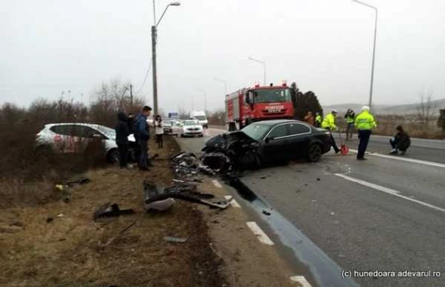 Două autoturisme au intrat în coliziune frontală, marţi dimineaţa, pe şoseaua Hunedoara – Deva, în zona localităţii Cristur.