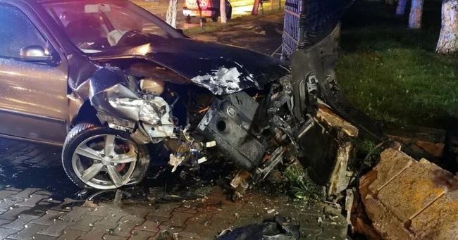 Şoferul a scăpat fără a fi rănit, însă gardul de beton şi fier şi maşina sa au fost distruse.