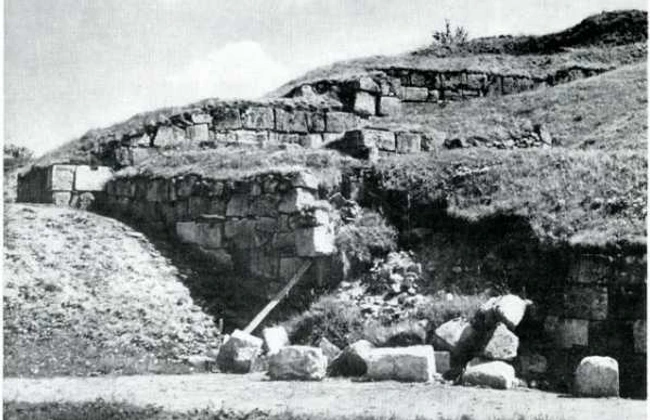 Judecând după unele scene ale Columnei Traiane, zidul dacic în opus quadratum, înalt desigur de 3-4 metri, se termina, în partea lui superioară, cu un acoperămînt de trunchiuri de copac despicate longitudinal, aşezate cu partea convexă în sus şi puţin Înclinate spre exterior pentru ca apa de ploaie sau cea provenită din topirea zăpezii să se poată scurge. Astăzi acoperământul de trunchiuri de copac nu mai există, după cum nu există nici bârnele transversale din structura zidului. Apa pătrunde nestingherită În emplectonul zidurilor dacice, provocând dislocarea şi prăbuşirea blocurilor. Pătrunzînd în crăpăturile blocurilor şi În porii lor (să nu uităm că avem de-a face cu calcar conchilic), apa îngheaţă în timpul iernii şi, dilatîndu-se, lărgeşte fisurile”, informa autorul.