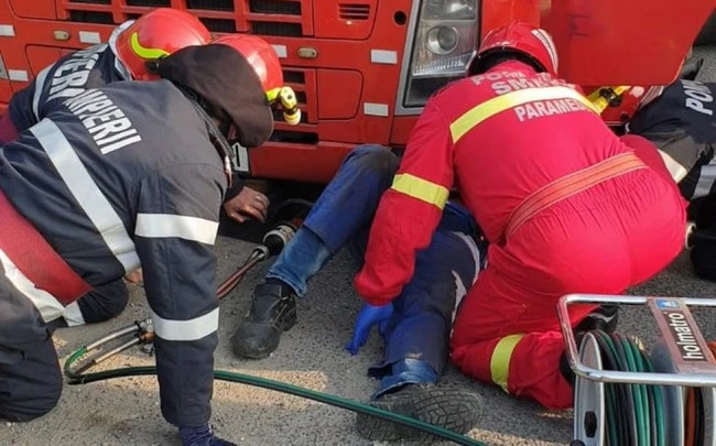 Echipele de pompieri, specializate în descarcerare şi prim ajutor, din Deva şi Ilia au avut o misiune dificilă pentru salvarea unui tânăr prins sub un autotren.