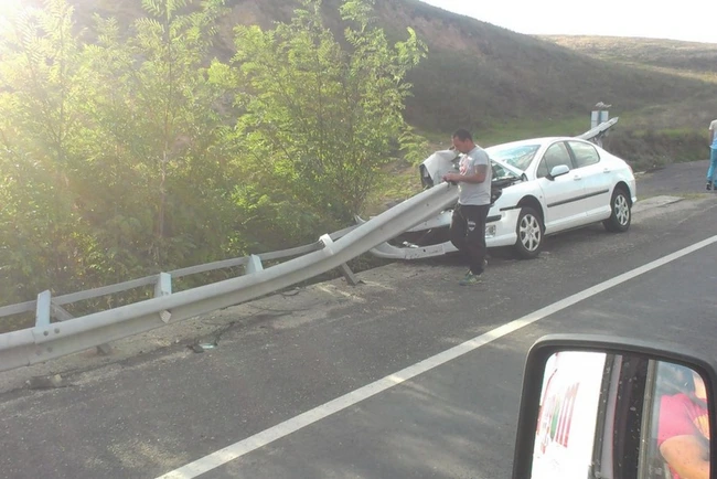 FOTO Maşina unui tânăr care a adormit la volan, străpunsă de un parapet