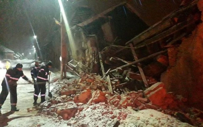 Ninsorile au făcut din nou pagube în Valea Jiului. Acoperişul unui fost restaurant din Petrila s-a prăbuşit sub greutatea omătului.