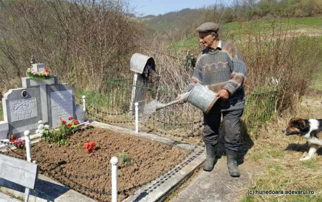 „Punem flori pe morminte, le curăţăm de buruieni şi le văruim unde este nevoie. Apoi îl îşteptăm pe preot să vină de Paşte la slujbă, să aducă alte cununi colorate pe care la aşezăm pe morminte. Paosul (parastasul) de Paşte este una dintre puţinele bucurii pe care le mai avem aici, în acest loc uitat de lume”, spune Loghin Topor, un sătean de 70 de an, venit să aibă grijă de cimitir.