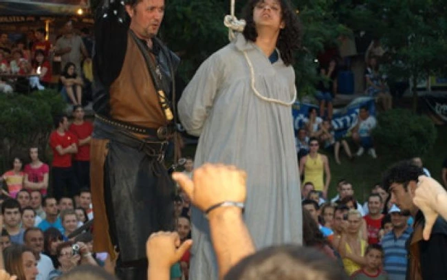 Imediat după ce tânărul şi-a primit pedeapsa, o altă scenetă i-a captat pe spectatori: procesul unei presupuse vrăjitoare, urmat de arderea acesteia pe rug.