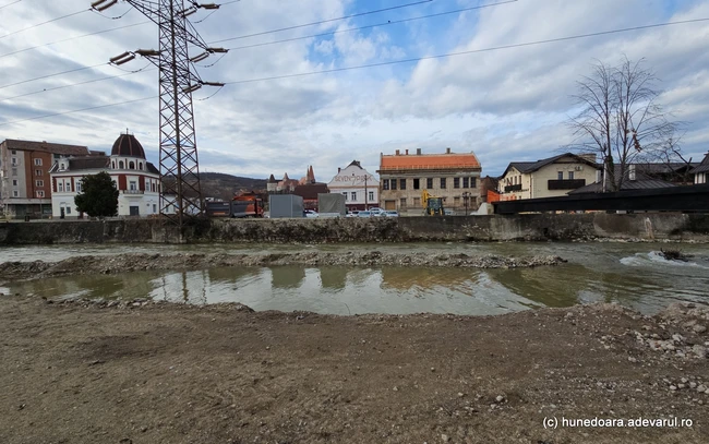Lucrările vor fi reluate în săptămânile viitoare, când vor trebui consolidate zidurile de sprijin (digurile marginale), vechi de peste șase decenii și va începe amenajarea unei promenade, pe traseul dintre cele trei poduri rutiere din Centrul vechi din Hunedoara.