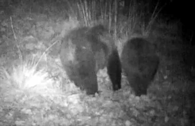 0O pereche de urşi bruni a fost suprinsă „la plimbare”, noaptea, în Retezat, de camerele de supraveghere din rezervaţie.