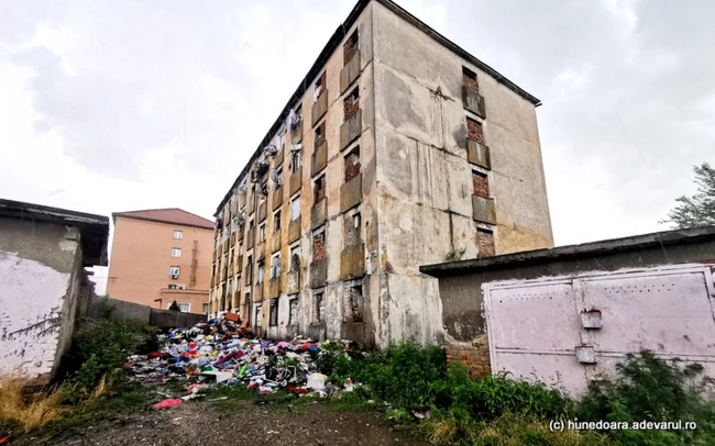 Au trecut doar trei săptămâni de când angajaţii serviciului de salubritate din Hunedoara au făcut curăţenie în zona „blocului fantomă”, o clădire cu peste 100 de locuinţe sociale din Hunedoara.