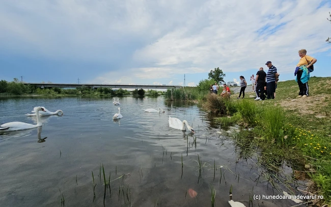 Video Lacul lebedelor de pe râul Strei din Hunedoara, invadat de turiști. Este plin de păsări prietenoase VIDEO