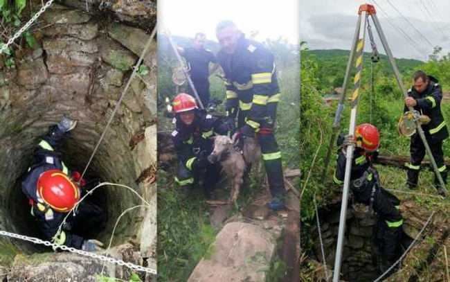 Misiune de salvare inedită. Pompierii au coborât într-un puţ de 15 metri, după un ied luat de ape