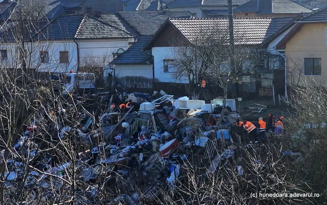 Primele măsuri de îndepărtare a lucrurilor strânse de hunedorean au fost luate de primărie miercuri dimineață. Mai mulți angajați ai serviciului de salubrizare, un buldozer și mașinile de marfă au sosit la poarta localnicului.